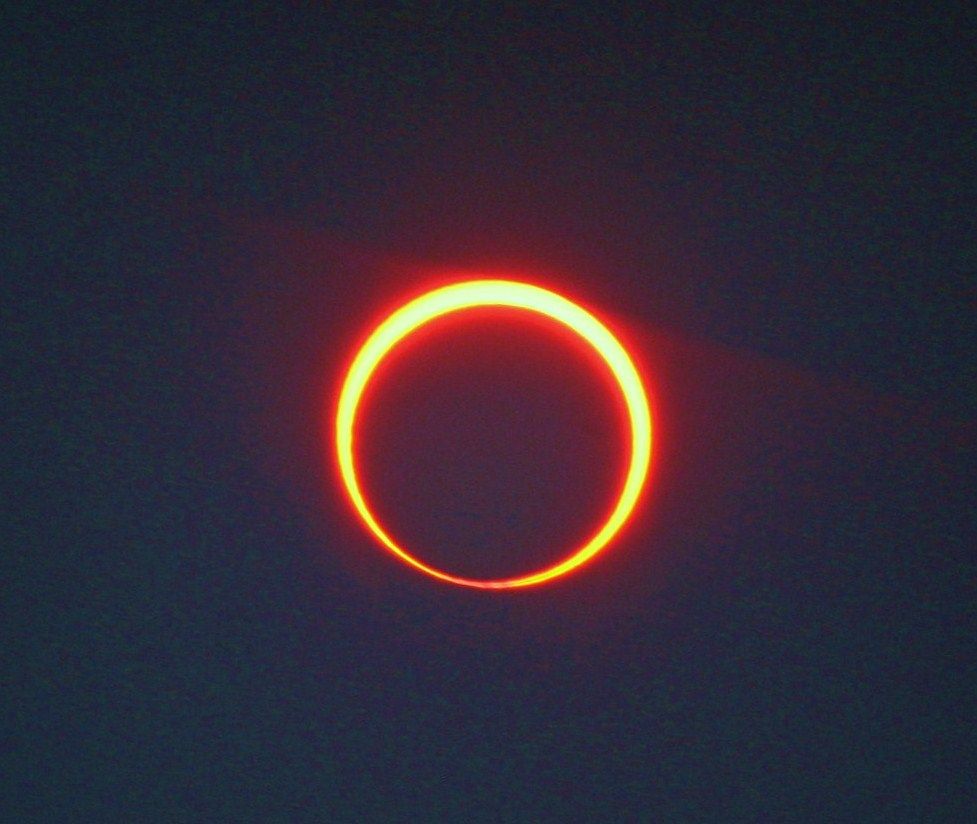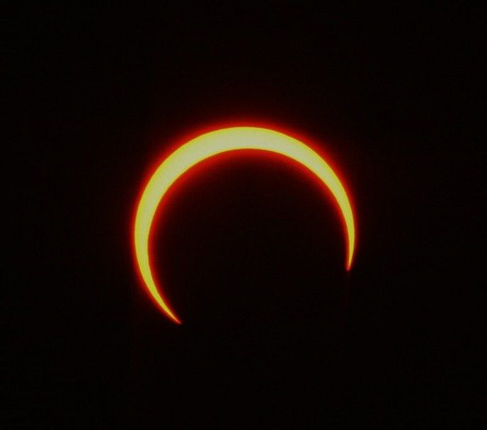 ![]() Obrączkowe zaćmienie Słońca 20. maja 2012 r. ![]() ![]() FOTO: dr Tomasz Durakiewicz, USA, New Mexico, Los Alamos, teleobiektyw 300 mm, Canon, filtr szary. t = 13:30 UTC.